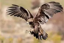 金雕:属于鹰科、雕属的猛禽。体长76-102厘米,翼展达2.3米,体重2-6.5千克。雌雄同色。未成年时,头、颈黄棕色;两翼飞羽除了最外侧三枚外基部均缀有白色,其余身体部分暗褐色;羽尾灰白色,…全部>>