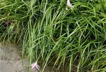 玉龙草,为沿阶草属植物,具有块根,根系发达,根长可及20公分以上,乳白色略粗,几无茎,植株矮小,簇生成半球团状,高约10公分。 单叶,丛生,叶片长10~20公分,宽0.2~0.3公分,狭线形,叶基锐,…全部>>