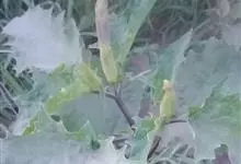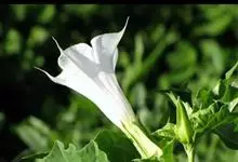 曼陀罗,茄科曼陀罗属一年生大型草本植物,全株光滑。有臭气;叶呈广卯形,边缘具不规则波状浅齿裂;花单生于枝杖间或叶腋,直立,有短梗;花萼是筒状裂片三角形,颜色为白色或淡紫色;果实为蒴果卵状,…全部>>