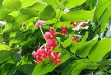 使君子 Jongkind)是使君子科、使君子属攀援灌木,叶对生,椭圆形,两面均被灰白色柔毛。穗状花序,倒挂下垂。花期夏秋。果有五棱,熟时黑色,种子白色。分布于印度、缅甸、菲律宾和中国。喜温润,深根性,…全部>>