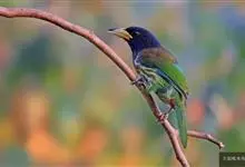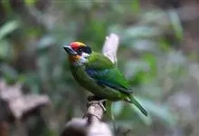 金喉拟啄木鸟,是须鴷科、拟啄木鸟属的鸟类。金喉拟啄木鸟为小型鸟类,体长19-24厘米。额深红色,头顶金黄色,后枕具一大块深红色斑,耳羽和头侧银灰色,上体草绿色,颏和上喉金黄色,下喉淡银灰色,…全部>>