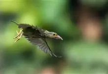 绿拟啄木鸟为鴷形目,须科,拟啄木属的一种。形较大拟啄木鸟略小,体长约260mm。头、颈及胸浅褐而具淡黄白色条纹;喉几为淡黄白色;身体余部草绿色。虹膜棕褐色,眼周裸露部黄色;嘴峰角黄色;跗跖和趾角黄…全部>>