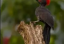 白腹黑啄木鸟,是啄木鸟科、黑啄木鸟属的中型鸟类,体长43-46厘米,头顶具长的红色羽冠,颚纹亦为红色,其余头、颈、胸和上体黑色,腰和腹白色,飞翔时白色腋羽和翅下覆羽亦明显可见。雌鸟头顶黑色,…全部>>