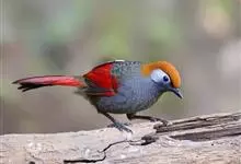 赤尾噪鹛中型鸟类,体长24~28厘米。头顶至后颈红棕色,两翅和尾鲜红色,眼先、眉纹、颊、颏和喉黑色,眼后有一灰色块斑。其余上下体羽大都暗灰或橄榄灰色。特征极明显,特别是通过鲜红色的头顶、翅和尾。…全部>>