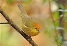 金头穗鹛小型鸟类,体长10~11厘米,是一种黄色小鸟。头顶金黄色有黑色纵纹,眼先黑色,在头、颊和耳羽金黄色的衬托下亦甚醒目。上体橄榄黄色,下体亮黄色,腹和两胁沾绿。…全部>>