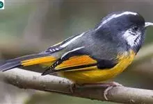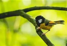 金胸雀鹛是莺科、雀鹛属小型鸟类,体长10-11厘米。头黑色,头顶中央有一道白色中央冠纹,颊和耳羽亦为白色,在黑色的头部极为醒目。上体深灰沾绿。两翅黑色,外侧飞羽有黄色外缘和白色端斑;尾凸状、黑色。…全部>>