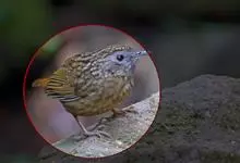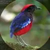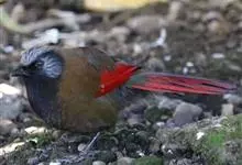 丽色噪鹛是红翅噪鹛的指名亚种。中型鸟类,体长23-28厘米。头顶灰橄榄褐色具粗著的黑色纵纹,头侧、颏、喉黑色,耳羽灰白色具黑色纵纹。背和胸、腹棕褐色,两翅具一大的鲜红色斑,尾亦为鲜红色。特征极明显,…全部>>