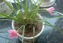 小韭兰学名韭菜莲又名风雨花、菖蒲莲、红玉帘和旱水仙,多年生草本,鳞茎卵球形,基生叶常数枚簇生,线形,扁平,花单生于花茎顶端,下有佛焰苞状总苞,花玫瑰红色或粉红色,蒴果近球形,种子黑色,花期夏秋。韭莲…全部>>