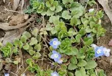 婆婆纳一年至二年生草本植物,有短柔毛。有蓝、白、粉三种颜色。茎自基部分枝,下部匍匐地面。三角状圆形或近圆形的叶子在茎下部对生,上部互生,边缘有圆齿。早春开紫红色小花,单生于苞腋。果期3-5月。喜光,…全部>>