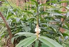 益智,别名:益智仁、益智子。姜科,山姜属多年生草本植物。株高可达3米;茎丛生;根茎短,叶片披针形,总状花序在花蕾时全部包藏于一帽状总苞片中,花时整个脱落,花序轴被极短的柔毛;花萼筒状,花冠白色,…全部>>