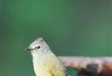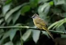 黄绿鹎,小型鸟类,体长19-22厘米。额至头顶暗褐具灰色羽缘,眼先黑色,其上面有一粗著的白纹从鼻后至眼,在黑色的头部极为醒目。上体橄榄绿褐色。颏、喉淡灰色或灰白色,胸灰褐色具橄榄黄色羽缘,…全部>>