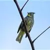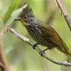 纵纹绿鹎,是鹎科鹎属的一种动物,是体型中等大小鸟类,体长20-24厘米。头绿褐色具明显的冠羽,其上具细的白色纵纹。上体橄榄绿色具细的白色纵纹。眼圈浅黄色。喉和尾和覆羽黄色,其余下体暗灰黑色具黄白色纵纹。…全部>>