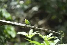 蓝翅叶鹎:小型鸟类,体长15-18厘米。雄鸟通体草绿色,尾蓝绿色,肩和翅亮蓝 色,胸缀有黄色,颏、喉黑色。雌鸟颏,喉蓝绿色。栖息在海拔1500米以下的常绿阔叶林、次生林和林缘疏林灌丛中。…全部>>