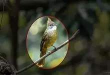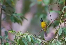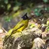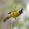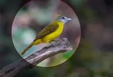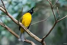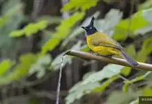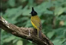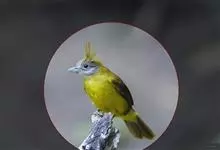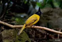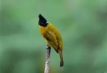 黑冠黄鹎:体长18-21厘米,是一种中等体型偏黄色鹎。整个头、颈、颏、喉黑色,头顶有显著直立的羽冠,黑色,上体褐橄榄黄绿色,下体橄榄黄色。虹膜偏红;嘴及脚黑色。…全部>>
