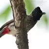 黑喉红臀鹎是雀形目鹎科鹎属鸟类,别称有黑头公、红臀鹎。头顶黑色具光泽;后颈、肩和背暗褐具灰色狭缘;腰羽几纯暗褐,尾上覆羽近白色,羽端浅灰褐色;尾羽褐黑,中央尾羽具狭窄的白色端斑,…全部>>