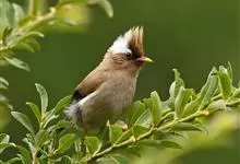 白领凤鹛是画眉科的一类动物。体长15-18厘米。头顶和羽冠土褐色,具白色眼圈,眼先黑色,枕白色,向两侧延伸至眼,向下延伸至后颈和颈侧,在颈部形成白领极为醒目。上体土褐色,飞羽黑色,…全部>>