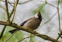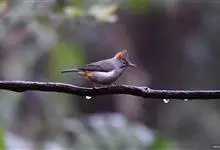 栗耳凤鹛,雌雄羽色相似。额、头顶至枕灰色,头顶有一短的不甚明显的羽冠,系由头顶羽毛向后延长形成、灰色具细的白色羽干纹,眼先灰色,眉纹白色不甚明显,其上有时杂有褐斑,…全部>>
