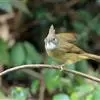 纹喉凤鹛:小型鸟类,体长13-16厘米。头顶和羽冠暗褐色或褐灰色,上体橄榄褐色,飞羽黑褐色,外侧次级飞羽表面橙黄色,构成一块纵形翼斑,极为醒目。颏、喉淡棕白色,具黑色纵纹,腹和尾下覆羽橙黄色。…全部>>