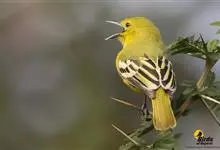 纹喉鹎:体长19厘米,是一种中等体型的偏绿色鹎。特征为头顶、脸颊、颏及喉均具黄色条纹。上体橄榄绿色。胸腹暗灰色,肛周和尾下覆羽艳黄。不可能与任何其他鹎类混淆。虹膜褐色;嘴黑色;脚粉褐色。…全部>>