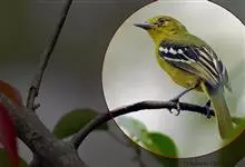 黑翅雀鹎:体重14-19克,体长11.5-16厘米。是树栖性绿色小鸟,外形与叶鹎相似,下体黄色。鸟喙直,翼长而尖,总体羽毛是绿色和黄色相结合,翼上具两道明显近白色横纹,翼近黑而羽缘白。…全部>>