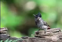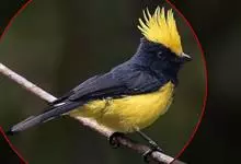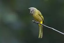 黑冠黄鹎:体长18-21厘米,是一种中等体型偏黄色鹎。整个头、颈、颏、喉黑色,头顶有显著直立的羽冠,黑色,上体褐橄榄黄绿色,下体橄榄黄色。虹膜偏红;嘴及脚黑色。…全部>>