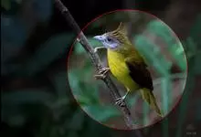 凤头雀嘴鹎:属小型鸟类,体长18-22厘米。嘴粗短、呈象牙色或乳黄色,前额和脸灰色,头顶黑色,有一朝前竖立的黑色羽冠。上体橄榄绿色,下体黄绿色,尾羽黄绿色具宽阔的黑褐色端斑。…全部>>