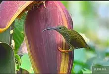 纹背捕蛛鸟:为太阳鸟科捕蛛鸟属的鸟类。是太阳鸟科中体型较大的一种,体重25-45克,体长160-210毫米。嘴粗长而尖且向下弯曲。上体橄榄黄色具黑色中央斑纹。下体淡黄白色满布黑色纵纹,尾具黑色次端斑。…全部>>