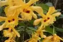 束花石斛是兰科石斛属植物。茎粗厚,肉质,下垂或弯垂,圆柱形,不分枝,具多节。叶二列,互生于整个茎上,纸质,长圆状披针形。伞状花序近无花序柄,每2-6花为一束,侧生于具叶的茎上部;花黄色,…全部>>