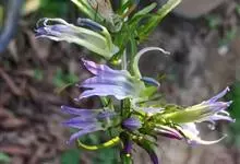 线萼山梗菜,为桔梗科多年生草本植物,叶互生,排成两行,花单生叶腋,花两性,有小苞片;花萼筒卵状,裂片等长,全缘,果期宿存;花冠两侧对称,雄蕊筒包围花柱,花药管灰蓝色,…全部>>