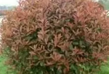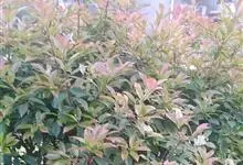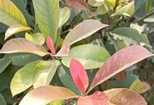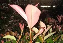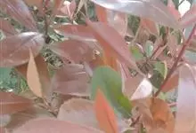 红叶石楠 是蔷薇科,石楠属杂交种,为常绿小乔木或灌木,乔木高可达5米、灌木高可达2米。叶片革质,长圆形至倒卵状、披针形,叶端渐尖,叶基楔形,叶缘有带腺的锯齿,花多而密,复伞房花序,花白色,梨果黄红色,…全部>>