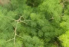 蓬莱松是天门冬科、天门冬属多年生丛生草本植物。宿存,圆柱形肉质根,纵截面为绿色和表面灰色。植株高可达3米。茎呈圆柱形或近四边形,底部木质化,具有灰色或灰褐色。幼嫩的茎在每个节上都被紫绿色鳞片包,…全部>>