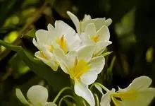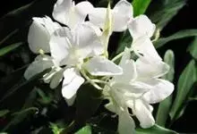 姜花又名野姜花。是姜科姜花属的多年生草本植物,茎高1-2米;叶片长圆状披针形或披针形,叶面光滑,叶背被短柔毛;穗状花序顶生,椭圆形,花芬芳,白色;蒴果卵状三棱形,微黄绿色;种子鲜红色,具橘红色的假种皮。…全部>>