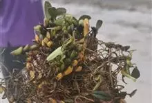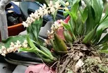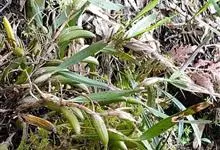 云南石仙桃:根状茎匍匐、分枝,粗4-6毫米,密被箨状鞘,通常相距1-3厘米生假鳞茎;假鳞茎近圆柱状,向顶端略收狭顶端生2叶。叶披针形,坚纸质。花葶生于幼嫩假鳞茎顶端,连同幼叶从靠近老假鳞茎基部的根状…全部>>