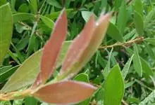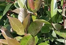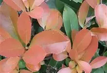 红叶石楠 是蔷薇科,石楠属杂交种,为常绿小乔木或灌木,乔木高可达5米、灌木高可达2米。叶片革质,长圆形至倒卵状、披针形,叶端渐尖,叶基楔形,叶缘有带腺的锯齿,花多而密,复伞房花序,花白色,梨果黄红色,…全部>>
