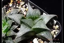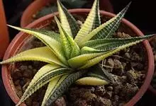 条纹十二卷 Haw.)是芦荟科十二卷属植物,为多年生肉质草本植物。植株高度10-15厘米,其呈莲座状生长;叶片紧密轮生在茎轴上,柔软多汁,呈长三角状披针形,极肥厚;叶面光滑、扁平,色深绿;叶背突起,…全部>>