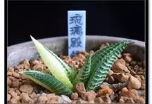 琉璃殿 G.D.Rowley)是阿福花科,十二卷属的多肉植物。莲座状叶盘10厘米大,叶20枚左右,排列时向一个方向偏转似风车一般。叶卵圆状三角形,先端急尖,正面凹背面因突,有明显的龙骨突。深绿色,…全部>>