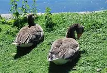灰雁:体长70-90厘米,翼展147-182厘米,体重2.5-4千克,寿命17年。体大而肥胖。嘴、脚肉色,上体灰褐色,下体污白色,飞行时双翼拍打用力,振翅频率高。脖子较长。腿位于身体的中心支点,…全部>>