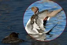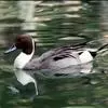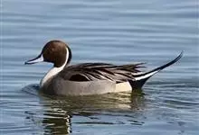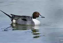 针尾鸭,是雁形目鸭科鸭属动物。体长约75厘米的大型戏水鸭,雄鸟头暗褐色,颈侧有白色纹路,向下与胸部白色相连,中央一对尾羽特别长;背灰色,有黑色细纹;翼镜绿色,胸腹白色,尾下覆羽黑色;雌鸟体羽大致为褐色,…全部>>