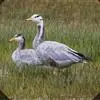斑头雁是雁形目鸭科雁属鸟类,又称白头雁、黑纹头雁。通体大都灰褐色,头和颈侧白色,头顶有两道黑色带斑;虹膜暗棕色,嘴橙黄色,嘴甲黑色,脚和趾橙黄色;背部淡灰褐色,羽端缀有棕色,形成鳞状斑;颏、喉污白色,…全部>>