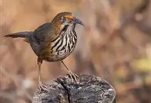 长嘴钩嘴鹛是画眉科、钩嘴鹛属中型鸟类,体长24-27厘米。嘴粗壮、长而尖且向下弯曲。上体橄榄褐色或橄榄棕褐色,颊和耳羽灰褐色,其后有一栗红色斑,耳羽上面从眼后开始有一长的白色纵纹沿颈侧向下。下体白色,…全部>>