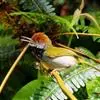 普通缝叶莺,是雀形目鹅科莺亚科缝叶莺属一种。体长10-14厘米,体重7-10克,雄鸟前额棕红,头顶至枕棕橄榄褐,上体橄榄绿染黄,飞羽及尾羽暗褐;繁殖期雄鸟的中央尾羽特形延长,下体淡皮黄白色。…全部>>