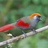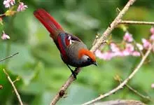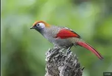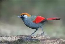 赤尾噪鹛中型鸟类,体长24~28厘米。头顶至后颈红棕色,两翅和尾鲜红色,眼先、眉纹、颊、颏和喉黑色,眼后有一灰色块斑。其余上下体羽大都暗灰或橄榄灰色。特征极明显,特别是通过鲜红色的头顶、翅和尾。…全部>>