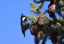 三趾啄木鸟,是啄木鸟科、啄木鸟属的小型鸟类,体长20-23厘米,雄鸟头顶金黄色,雌鸟黑色而具白色斑点。眼至耳覆羽黑色,眼后有一条白色纵纹,颊纹白色,颚纹黑色,甚为醒目。枕和后颈黑色,…全部>>