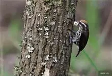 斑姬啄木鸟是鴷形目啄木鸟科姬啄木鸟属鸟类,又叫姬啄木鸟、小啄木鸟。体长9-10厘米。嘴尖而略粗壮,灰黑色;额棕色,向颈后逐渐过渡至橄榄绿色;眉纹白色,过眼纹黑褐色,其下有一白纹,…全部>>