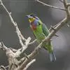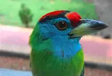 蓝喉拟啄木鸟,是须鴷科、拟啄木鸟属的鸟类。蓝喉拟啄木鸟为小型鸟类,体长20-23厘米。前额至头顶鲜红色,其上有一宽阔的黑色横带,将此红色分为前后二块;头侧、颏、喉蓝色,下喉两侧各具一红色点斑。…全部>>