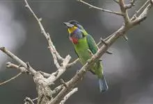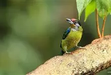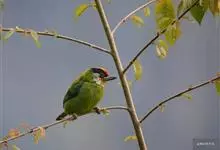 金喉拟啄木鸟,是须鴷科、拟啄木鸟属的鸟类。金喉拟啄木鸟为小型鸟类,体长19-24厘米。额深红色,头顶金黄色,后枕具一大块深红色斑,耳羽和头侧银灰色,上体草绿色,颏和上喉金黄色,下喉淡银灰色,…全部>>