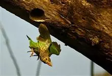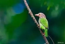 绿拟啄木鸟为鴷形目,须科,拟啄木属的一种。形较大拟啄木鸟略小,体长约260mm。头、颈及胸浅褐而具淡黄白色条纹;喉几为淡黄白色;身体余部草绿色。虹膜棕褐色,眼周裸露部黄色;嘴峰角黄色;跗跖和趾角黄…全部>>