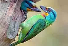 黑眉拟啄木鸟,为须䴕科、拟啄木鸟属的小型鸟类,体长20-25厘米,外形和金喉拟啄木鸟非常相似,但具粗著的黑色眉纹,头侧和耳覆羽以及下喉蓝色而不为银灰色,前颈两侧各有一块鲜红色斑。全部>>