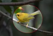 金头穗鹛小型鸟类,体长10~11厘米,是一种黄色小鸟。头顶金黄色有黑色纵纹,眼先黑色,在头、颊和耳羽金黄色的衬托下亦甚醒目。上体橄榄黄色,下体亮黄色,腹和两胁沾绿。…全部>>