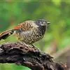 大噪鹛:中型鸟类,体长32-36厘米。额至头顶黑褐色,背栗褐色满杂以白色斑点,斑点前缘或四周还围有黑色。初级覆羽、大覆羽和初级飞羽具白色端斑。尾特长,均具黑色亚端斑和白色端斑。颏、喉棕褐色,…全部>>